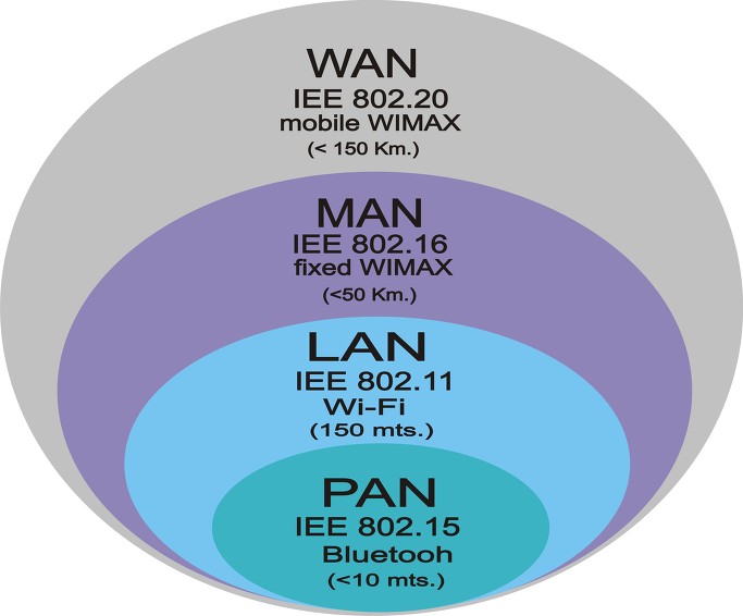 우리가 가까운 거리는 걸어가거나 지하철을 타고 먼 거리는 시외버스나 기차를 타듯이 테이터가 이동하고자 하는 거리에 따라서 네트워크의 종류를 구분할 수 있다. 가장 작은 규모의 네트워크인 PAN(Personal Area Network)부터 광대역 네트워크인 WAN(Wide Area Network)까지 그 쓰임과 네트워크 연결 방법이 다양하다. 지금은 기초를 위해 간단한 것들만 살펴본다.